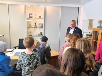 Im Büro des Bürgermeisters konnten die Kinder ihre Fragen an den Rathauschef loswerden. (Foto: Stadt Braunfels)
