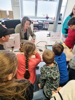 Mit der Frage: „Wer von euch war schon mal im Urlaub und brauchte dafür einen Reisepass?“ startete Tanja Gerland die Station im Bürgerbüro. Einige der Kinder kannten bereits ein paar der Aufgabenbereiche des Bürgerbüros. Zum Schluss durften sie noch ausprobieren, wie man einen Fingerabdruck für einen Personalausweis abgibt, was auf große Begeisterung unter den Kindern stieß. Die zweite Gruppe der Grundschule erhielt währenddessen von Jan Falke einen Einblick in die Aufgaben des Ordnungsamtes.