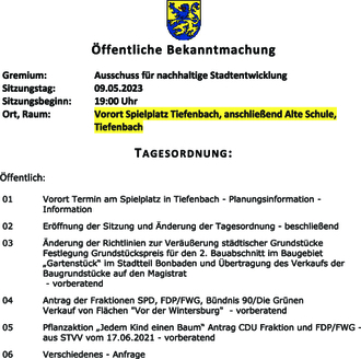 | Festlegung Grundstückspreis für den 2. Bauabschnitt im Baugebiet „Gartenstück“ im Stadtteil Bonbaden und Übertragung des Verkaufs der Baugrundstücke auf den Magistrat - vorberatend |
