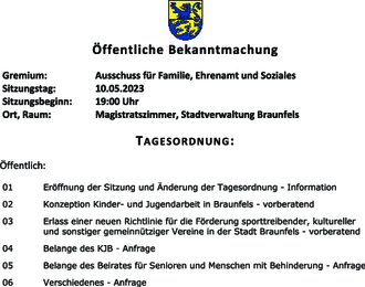 | 03 | Erlass einer neuen Richtlinie für die Förderung sporttreibender, kultureller und sonstiger gemeinnütziger Vereine in der Stadt Braunfels - vorberatend |