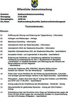 | Ort, Raum: | Stadtverwaltung Braunfels, Stadtverordnetensitzungssaal |