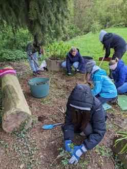 Die Jugendlichen zupften Unkraut, setzten Pflanzen und verteilten Rindenmulch (Foto: Tanja Graf und Team)