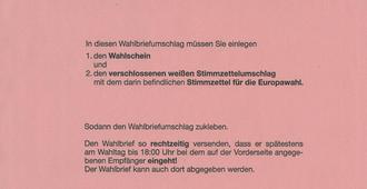 Weißer Stimmzettelumschlag, inkl. Stimmzettel (Europawahl)
