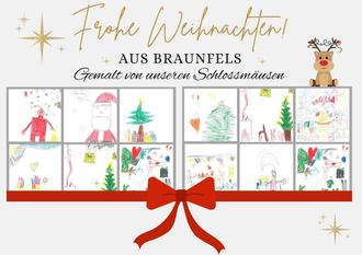 Deshalb haben 50 unserer Kita-Kinder "Schlossmäuse" Weihnachtsbilder gemalt. Mit den bezaubernden Ergebnissen hat die Stadt Braunfels Weihnachtskarten gestaltet.