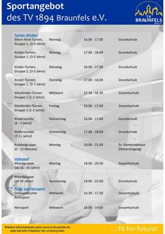 Sportangebote des TV 1894 Braunfels, Teil 1
