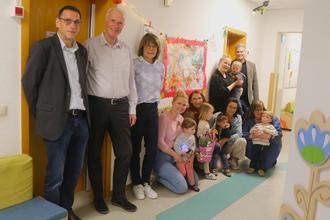 Beim Besuch in der Kinderkrippe Löwenzahn in Aßlar-Werdorf präsentierten die Erzieherinnen und Kinder stolz ihr Bild. Foto: Lahn-Dill-Kreis