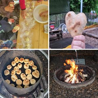 Gemeinsam backten die Kinder selbstgeformte Brötchen über dem Feuer. (Foto: Stadt Braunfels)