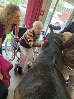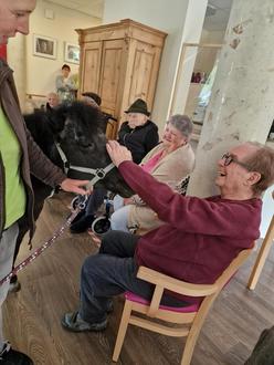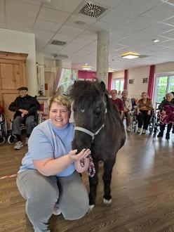 Er fungierte wie ein „Türöffner“ auch und besonders bei unseren dementiell erkrankten Bewohnern. Die Berührungen des warmen, weichen Felles und der zarten Nüstern zauberte ein glückliches Lächeln in die Gesichter aller.