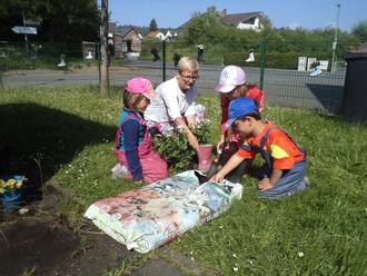 Unter Anleitung bepflanzten die Kita-Kinder ihre zu klein gewordenen Stiefel.