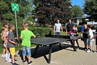 Bei Konrektorin Frau von Zydowitz sowie bei Herrn Rink von der Schlossschule Braunfels hatte der TVB mit seiner Idee auf offene Ohren gestoßen. So konnte rechtzeitig zu Beginn der Freiluftsaison die Outdoor-Platte mit dem fest montierten Metallnetz aufgestellt werden. Nutzen können die neue Platte insbesondere die Kinder der Schlossschule Braunfels während der Pausen und in der Nachmittagsbetreuung. Der Standort der Tischtennisplatte wurde aber so gewählt, dass das Spielgerät auch außerhalb der Schulzeiten zugänglich ist und genutzt werden kann.