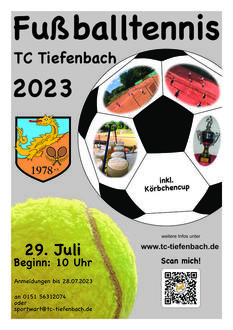 Ende Juli ist es wieder soweit! Das Fußballtennisturnier des Tennisclub Tiefenbach geht in die nächste Runde. Anmeldungen sind bis zum 28.07. möglich.