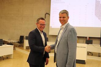 Am 30. Juni 2024 findet die Stichwahl zwischen Carsten Braun (links) und Frank Inderthal statt. (Foto: Lahn-Dill-Kreis/Marie-Therese Koch)