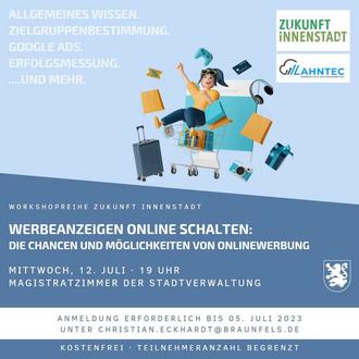 Der vierte und letzte Workshop im Rahmen des Förderprogramms "Zukunft Innenstadt" wartet mit vielen wertvollen Tipps, Tricks und Ideen zum Thema,,Online Werbung schalten‘‘ auf Sie. Gemeinsam mit unserer Dozentin Franziska Blicker (@lahntec) schauen wir uns die Chancen und Nutzungsmöglichkeiten, sowie einige Feinheiten der Online Werbung in diesem Workshop an und gehen gezielt auf einzelne Punkte ein. Dieser Workshop ist für all jene interessant, die die Schaltung von Online-Werbeanzeigen testen oder ein Feedback für bereits erfolgte Werbeanzeigen erhalten möchten. Die Teilnahme ist kostenlos!