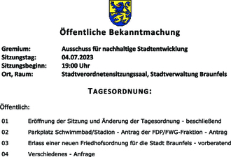| 03 | Erlass einer neuen Friedhofsordnung für die Stadt Braunfels - vorberatend |
