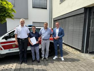 Der Lahn-Dill-Kreis hat mit Claudia Meyer ab dem 1. Juli 2025 eine neue Leitende Notärztin. Von links: Kreisbrandinspektor Harald Stürtz, Claudia Meyer, Dr. Andreas Schwarze, Sprecher der Leitenden Notärzte im Lahn-Dill-Kreis, Carsten Braun. (Foto: Lahn-Dill-Kreis)