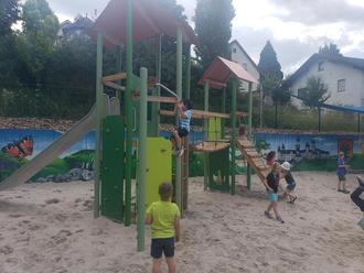 Endlich war es soweit. Nach langem Warten konnte die Kita Lindwurm am Freitag den 23.06.23, bei einem gemütlichen Hoffest, ihr neues Spielgerät offiziell einweihen.