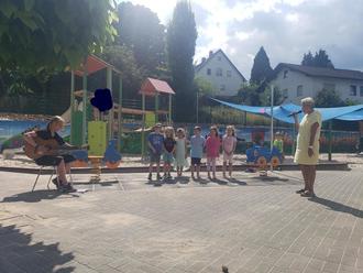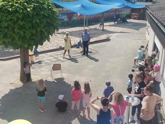Mit bunten Ballons, Musik- und Gesangseinlagen, einem abwechslungsreichen Buffet und frischgemachtem Popcorn entstand eine gemütliche Atmosphäre. So konnten sich Eltern, Kinder, Familien und das Kita Team gemütlich austauschen und einen geselligen Nachmittag zusammen genießen. Auch der Bürgermeister war von dem neuen Spielgerät und dem netten Beisammensein angetan. Er und Fr.Hauck (Kita Leitung) bedankten sich bei Eltern und Kindern für die Geduld, bei den Mitarbeitern des Bauhofes für die die gewissenhafte Ausführung des Aufbaus und beim Elternbeirat und dem Kita Team für die Planung des gelungenen Festes.