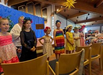 Eingangs spielte Dori am Flügel eine kleine Tarantella, um die darstellenden Mädels in ihrer Frühling- Sommerlaune tanzend in den Kirchen-Raum zu begleiten... Und zur Freude aller wurde dann noch „für Elise“ ins Programm aufgenommen. Es versteht sich: auswendig! Groooooße Leistung von Dori!