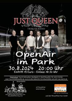 Am Freitag, den 30. August 2024 spielt die Tribute Band „JUST QUEEN“ Open Air im Braunfelser Kurpark.