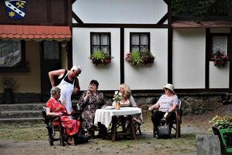 Temperaturen um die 30 Grad zu Beginn der Premiere um 19 Uhr auf der Bonbadener Freilichtbühne Bonbaden waren der Grund dafür, dass sich mit 170 Zuschauern am Samstagabend weit weniger Besucher einfanden als am Vortag zum Auftakt des Kinderstückes „Die kleine Hexe“. Die Laiendarsteller im Schwank „Cola, Cash und Kaugummi“ von Bernd Gombold sorgten jedoch für beste Unterhaltung, was zwischendurch immer wieder mit Lachsalven und Applaus quittiert wurde. Unter der Regie von Elge Kutscher, die selbst mit der Gemeinderätin Gisela eine der Hauptrollen im Original „Boarmeder Platt“ verkörpert, dreht sich alles um die Gastwirtschaft „Zum alten Seewirt“, eine altmodische Dorfkneipe, aber in einer traumhaften Lage. Der konservative Bürgermeister Anton Knackig (Volker Hellmig) schwingt dort das Zepter mit seinem Stellvertreter, dem stotterten Johann Klemmer (Peter Theiß) Die Frauenliga (Bärbel Eitz, Andrea Bördner, Evi Hadel-Meyer und Andrea Bördner) hat eigene Pläne um die zukünftige Ausrichtung der Gastwirtschaft. Die neue Pächterin Sabine Sauer (Lea Kräuter) will frischen Wind in diese Gastronomie bringen, scheitert aber an der Borniertheit der ortsansässigen Personen. Zunächst wird der faule Gemeindearbeiter Peter Schnell (Holger Wagner) hinter den Zapfhahn beordert. Der jedoch macht seinem Namen keine Ehre,obwohl man ihm nachsagt, er sei der schnellste Mann der Welt, „um vier Feierabend, um halb vier zuhause“. Schließlich wird aus dem beschaulichen ein kleines Hollywood nebst „Superworld“. Die guten Vorsätze bröckeln, Anstandsdamen werden schon mal zu leichten Mädchen und die Lokalpolitik wird kräftig untergraben. „Cola, Cash & Kaugummi“ wird bis zum 13.08.2023 jeweils samstags und sonntags auf der Waldbühne im Braunfelser Stadtteil Bonbaden aufgeführt. Die Eintrittspreise für Kinder ab 3 Jahre sowie Schwerbehinderte betragen 6,00 Euro, Erwachsene ab 14 Jahre zahlen 9,00 Euro. Nähere Informationen zu Reservierungen, Vorverkauf und mehr, gibt es im Internet unter www.freilichtbuehne-bonbaden.de oder unter Tel.: 06442-22195