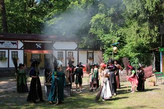 Über 380 Zuschauer freuten sich die Laiendarsteller der Freilichtbühne Bonbaden bei der Premiere zum Kinderstück „Die kleine Hexe“ von Otfried Preußler. Die kleine Hexe (Tiara Hormel) ist erst 127 Jahre alt und somit viel zu jung um beim jährlichen Hexentanz auf dem Blocksberg teilnehmen zu dürfen. Das jedenfalls sagen die großen Hexen. Wenn sie aber in der nächsten Walpurgisnacht die Hexenprüfung besteht dann darf sie beim großen Tanz endlich dabei sein. Und so übt sie ein Jahr lang fleißig, um eine gute Hexe zu werden. In ihrem Raben Abraxas (Nele Debus) hat sie ein kluger Berater- und Anlass, die Hexenkünste zu erproben gibt es genug. Sie straft den Förster, der die Holzweibchen verjagen will, schenkt den Blumenmädchen duftende Papierblumen, erteilt bösen Buben eine Lektion. Sie hext sogar an einem Freitag, was allerdings streng verboten ist. Und so notiert ihre größte Widersacherin, die Muhme Rumpumpel (Steffi Geyer), die jeden Schritt der kleinen Hexe verfolgt alles in ihr dickes Buch. „Die kleine Hexe“, unter der Regie von Lea Neuroth und Dominik Sütsch, wird bis zum 13.08.23 jeweils freitags um 16.00 Uhr und sonntags um 14.30 Uhr auf der idyllischen Waldbühne im Braunfelser Stadtteil Bonbaden aufgeführt. Die Eintrittspreise für Kinder ab 3 Jahre sowie Schwerbehinderte betragen 6,00 Euro, Erwachsene ab 14 Jahre zahlen 9,00 Euro. Nähere Informationen zu Reservierungen Vorverkauf und mehr gibt es im Internet unter www.freilichtbuehne-bonbaden.de oder unter Tel.: 06442-22195