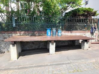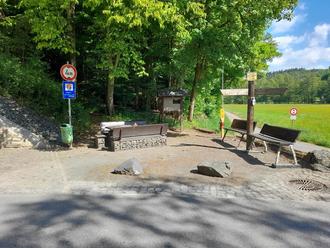 Jetzt war es an der Zeit dort wieder aktiv zu werden. Ebenfalls wurde auch die bei Wanderern und Radfahrern gleichfalls beliebte Sitzgruppe in die Pflegemaßnahmen einbezogen. Im Dorf erstrahlt die „Milchpritsch" wieder in neuem Glanz. Auch die alten Bohlen wurden entfernt.