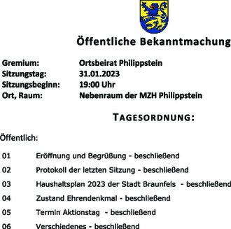 Haushaltsplan 2023 der Stadt Braunfels - beschließend
