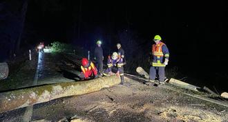 Einsatzkräfte entfernen umgestürzte Bäume von Kreis- und Landesstraßen. (Foto: Stadt Braunfels)
