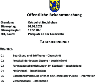 | Ort, Raum: | Parkplatz an der Feuerwehr |