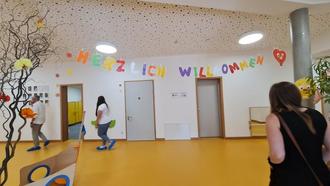 Bereits im hell und offen wirkenden Eingangsbereich wurden die Gäste durch eine „Herzlich-Willkommen“-Kette fröhlich begrüßt.