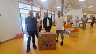 Einen Doppelkinderwagen spendete Architekturbüro Keul und Müller aus Aßlar. Hier auf dem Foto Projektleiter Mathias Müller, Inga Watz, Wolfgang Müller und Patrick Link.