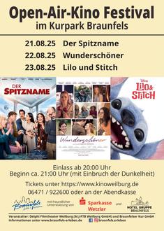 Präsentiert wird das Open-Air-Kino Festival von der Sparkasse Wetzlar und der Hotelgruppe Braunfels.