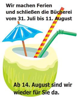 Die Stadtbücherei Braunfels verabschiedet sich in die Sommerpause. Vom 31. Juli bis zum 11. August 2023 bleibt unsere Bücherei geschlossen. Ab Montag, den 14. August 2023, sind wir wieder zu den gewohnten Öffnungszeiten für Sie da. Wir wünschen Ihnen und Ihrer Familie einen erholsamen Urlaub und freuen uns auf ein Wiedersehen!