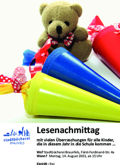 Liebe Kinder und Eltern, wir laden Euch herzlich zu unserem Lesenachmittag für Schulanfänger in der Stadtbücherei Braunfels ein. Am Montag, den 14. August ab 15 Uhr, werden wir Euch spannende Geschichten über die Schule und den besonderen Tag der Einschulung vorlesen. Bringt gerne auch Eure Lieblingsbücher mit und taucht mit uns gemeinsam in die Welt der Fantasie ein.