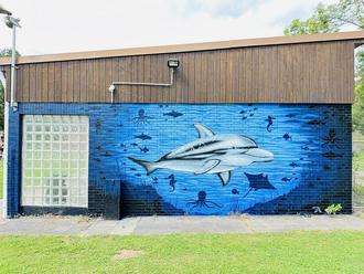 Das Graffiti wurde an den Folgetagen von Clave Rodriguez fertiggestellt und kann jetzt im Freibad bewundert werden.