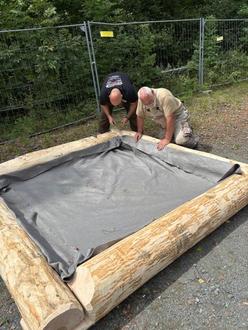 Die vier Stämme für den Rahmen des Sandkastens stellte das städtische Forstteam zur Verfügung. (Foto: Stadt Braunfels)