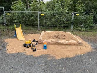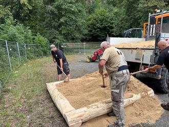 Im Nullkommanix hat der städtische Bauhof einen Sandkasten auf dem Gelände der Gemeinschaftsunterkunft aufgebaut und mit Sand befüllt. (Foto: Stadt Braunfels)