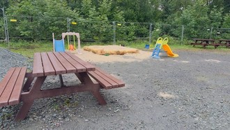 Nun wurde das Gemeinschaftsprojekt erfolgreich umgesetzt: Der Bauhof der Stadt Braunfels hat mit viel Engagement einen Sandkasten auf dem Gelände errichtet, der nun den Kindern zum Spielen zur Verfügung steht. Die dafür benötigten Holzstämme für den Rahmen hat das städtische Forstteam bereitgestellt. Ergänzend stellte die Stadt Parkbänke aus ihrem eigenen Fundus auf, um zusätzliche Aufenthaltsmöglichkeiten im Freien für die Bewohnerinnen und Bewohner zu schaffen. Braunfelser Bürgerinnen und Bürgern haben zudem Spielgeräte gespendet. Geplant ist außerdem das Aufstellen einer Tischtennisplatte, die vom Neukirchener Ortsvorsteher Peter Schubert gespendet wird.
