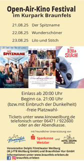 Präsentiert wird das Open-Air-Kino Festival von der Sparkasse Wetzlar und der Hotelgruppe Braunfels.