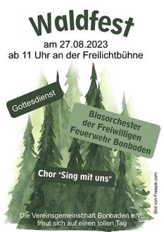 Die Vereinsgemeinschaft Bonbaden e.V. lädt alle BürgerInnen zum Waldfest am 27.08.2023 ab 11 Uhr ein.