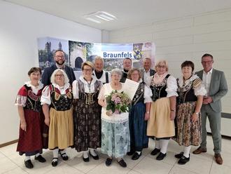 Helga Semper wurde für ihr jahrzehntelanges ehrenamtliches Engagement für die Egerländer Gmoi im Braunfelser Rathaus geehrt. (Foto: Stadt Braunfels)