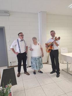 Für den musikalischen Rahmen sorgte das hessische Mundart-Duo „Bousseldande“. Ein besonders emotionaler Höhepunkt war, als Helga Semper gemeinsam mit dem Duo das Egerländer Lied „oitze how i ma Haisl im Wold assebaut“ anstimmte und damit ihre tiefe Verbundenheit zur Kultur ihrer Heimat zum Ausdruck brachte.