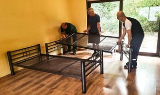 Bauhofmitarbeiter Alexander Mohr und Holger Sidorenko sowie Haustechniker Martin Eich bereiten das ehemalige Klärwärterhaus vor, so dass es mit Ankunft der ukrainischen Flüchtenden als Unterkunft dienen kann. (Fotos: Stadt Braunfels)