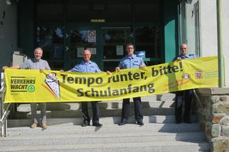 „Tempo runter, bitte! Schulanfang“ steht deshalb auf den Spannbändern, die die Verkehrswacht gemeinsam mit POR Holger Geller, dem Leiter der Polizeistation Wetzlar, sowie zwei Kollegen und dem Vorsitzenden der Verkehrswacht vor der Polizeistation präsentiert hat. Mehr als 50 dieser Transparente haben freiwillige Helfer in Zusammenwirken mit Verkehrserziehern des Polizeipostens Ehringshausen und Mitarbeitern der städtischen Bauhöfe an den Schulwegen im Altkreis Wetzlar angebracht. Motorisierte Verkehrsteilnehmer sollen auf diese Weise auf die ABC-Schützen aufmerksam und zu vorausschauendem Fahrverhalten angehalten werden.
