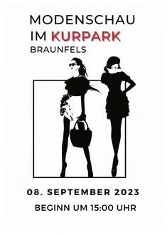 Am Freitag, 8. September 2023 veranstalten die ortsansässigen Modehäuser die traditionelle Herbstmodenschau Herbst und Wintermode, dieses Jahr wieder im Kurpark Braunfels.