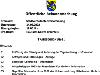| 04 | Wirtschaftsplan 2023 der Braunfelser Kur GmbH - Information |