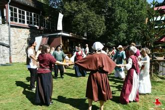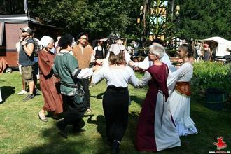 Bei herrlichem Wetter waren wieder Mitglieder des Volkstanzkreises beim Braunfelser Spektakulum beteiligt. In der entsprechenden Gewandung wurden zeitgenössische Tänze gezeigt und Besucher zum Mitmachen motiviert. Auch TänzerInnen der befreundeten Tanzgruppe „Reifenberger Härmleins“ reihten sich dieses Jahr wieder mit ein.