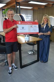 Elisa Marie Rink übergibt den Spendenscheck an Matthias Späth (2. Vorsitzender Menschen für Kinder e.V.)