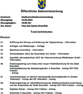 Änderungsantrag zum Erlass einer neuen Friedhofsordnung für die Stadt Braunfels