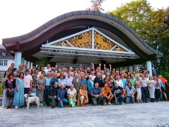 Es waren sicher mehr als 200 Menschen, die am Samstagnachmittag bei bestem Wetter in den Braunfelser Kurpark gekommen waren, um 60 Jahre Partnerschaft von Braunfels mit dem französischen Bagnols-sur-Cèze und dem englischen Newbury zu feiern. Unter Ihnen konnte Moderator Gernot Buseck, neben etwa 60 ausländischen Gästen, Graf und Gräfin Oppersdorff, die Braunfelser Altbürgermeister Peter Schneider, Dieter Schmidt und Wolfgang Keller, zahlreiche Magistratsmitglieder, Stadtverordnete und Vertreter der Partnerschaftsvereine aus Waldsolms und Leun begrüßen. Besonders erfreut begrüßte er den Ehrenvorsitzenden des Partnerschaftsrings Braunfels, Günter Jakob, die Ehrenmitglieder Ferdinand Betzenberger und Gerhard Adam sowie den langjährigen Partnerschaftssekretär für Newbury, Horst Schindler. Für den musikalischen und tänzerischen Rahmen sorgten mit dem Blasorchester der freiwilligen Feuerwehr Bonbaden und dem Volkstanzkreis Braunfels zwei Vereine, die über viele Jahre immer wieder aktiv an partnerschaftlichen Begegnungen teilgenommen haben.